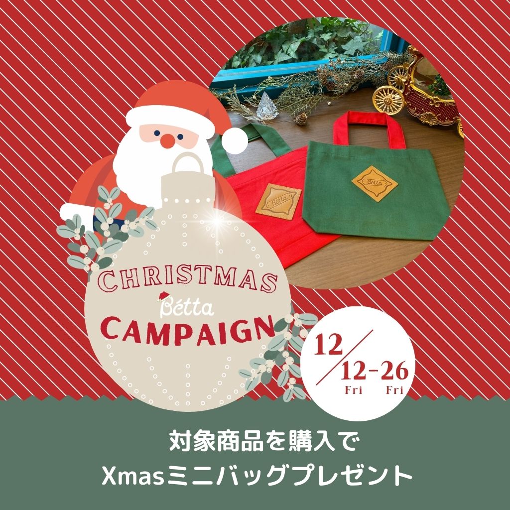 ハッピークリスマス ☆ ベッタから皆様に感謝の気持ちをこめてクリスマスプレゼントをご用意いたしました! 期間中にオンラインショップ「ベッタ ベビーストア」で対象商品をご購入いただいたお客様にもれなく、ベッタオリジナル ★ 限定カラーの「ミニバッグ」をプレゼントいたします!