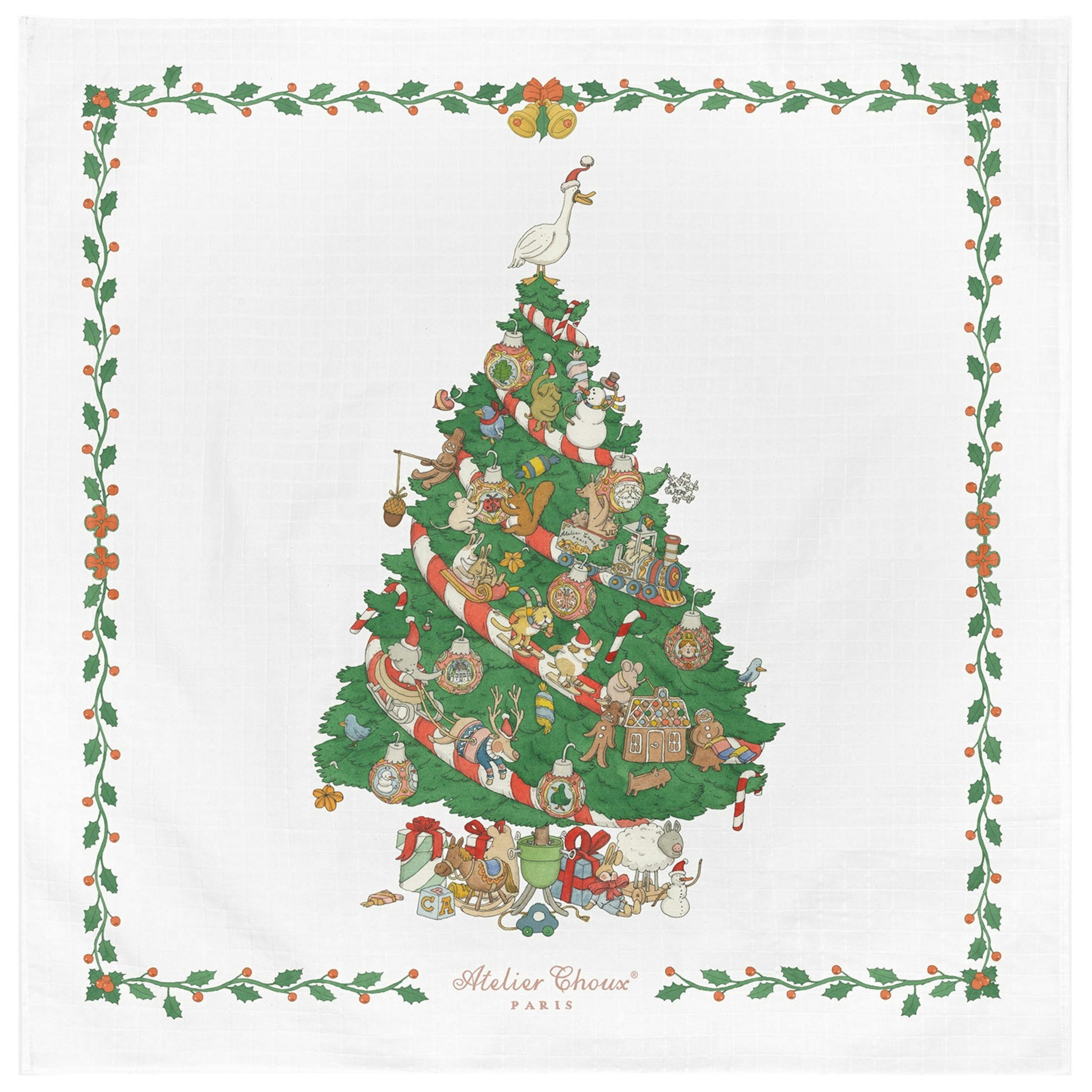 100cm×100cmの正方形いっぱいに描かれるイラストは、上から下まで楽しいディテールが詰まった見事なホリデーツリー。遊び心あふれる動物たち、ラッピングされた贈り物...やさしく幸せなデザインで、日常のひとときに魅力と祝祭感をもたらします。