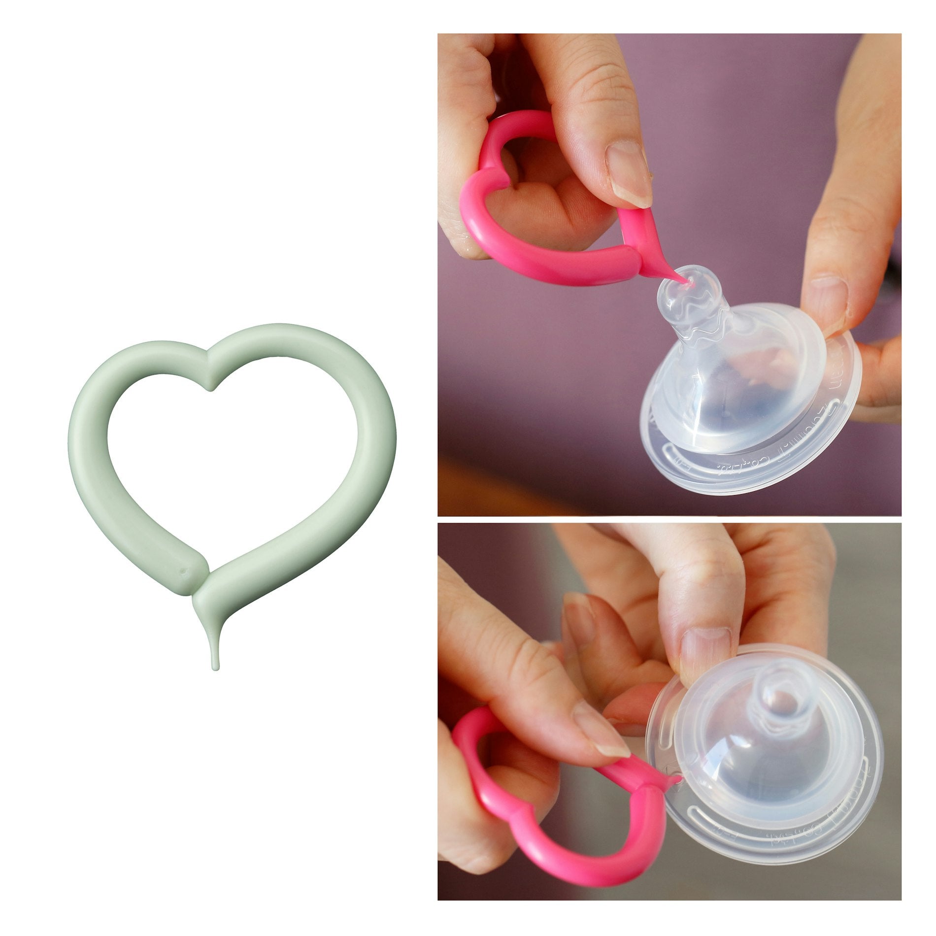 乳首お手入れ用の「ハートピン」も限定色。フードは赤ちゃんが愛情いっぱいの人生でありますようにと願いを込めた「ハート」型。