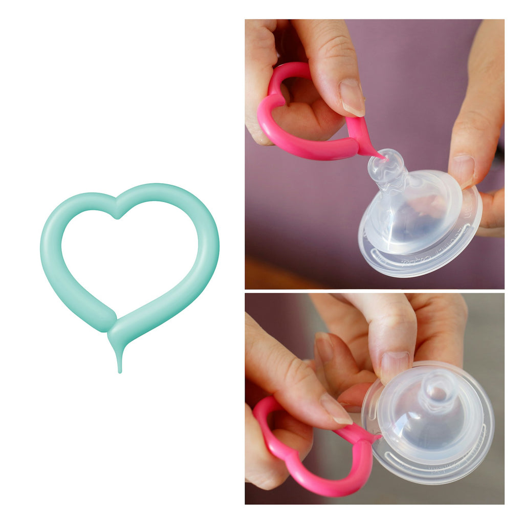 飲む乳首から噛む乳首へ。ママのおっぱいを目指した乳首。ママの乳首のようにやさしく伸びて、赤ちゃんのお口にフィット。ママのおっぱいを飲む時と同じように力強いソシャクを促します。