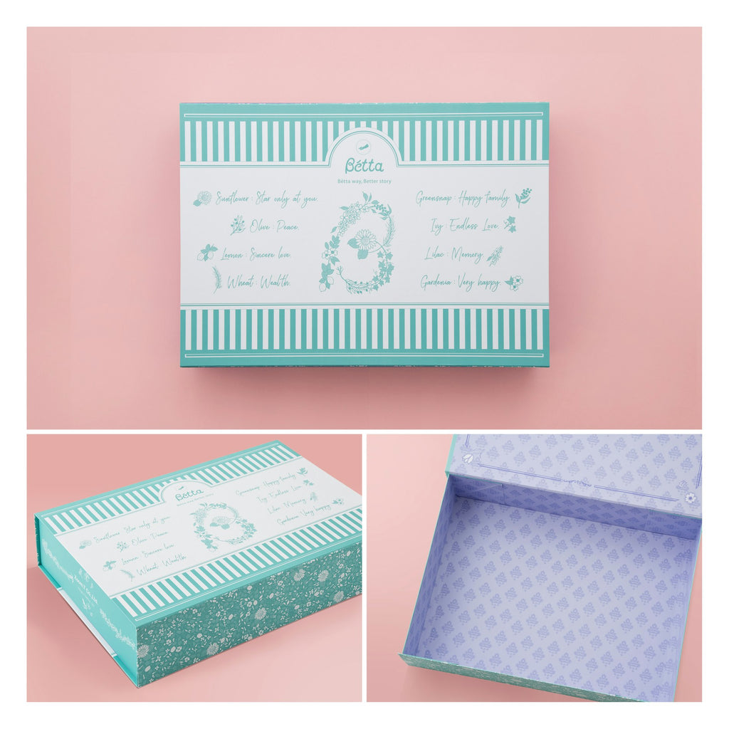 ギフトに嬉しい華やかなプレミアムボックスでお届け。ギフトボックスとしての役目はもちろん、赤ちゃん時代の思い出グッズを収納するメモリーボックスとしてもご活用いただけます。大切な方へのご出産祝いに。