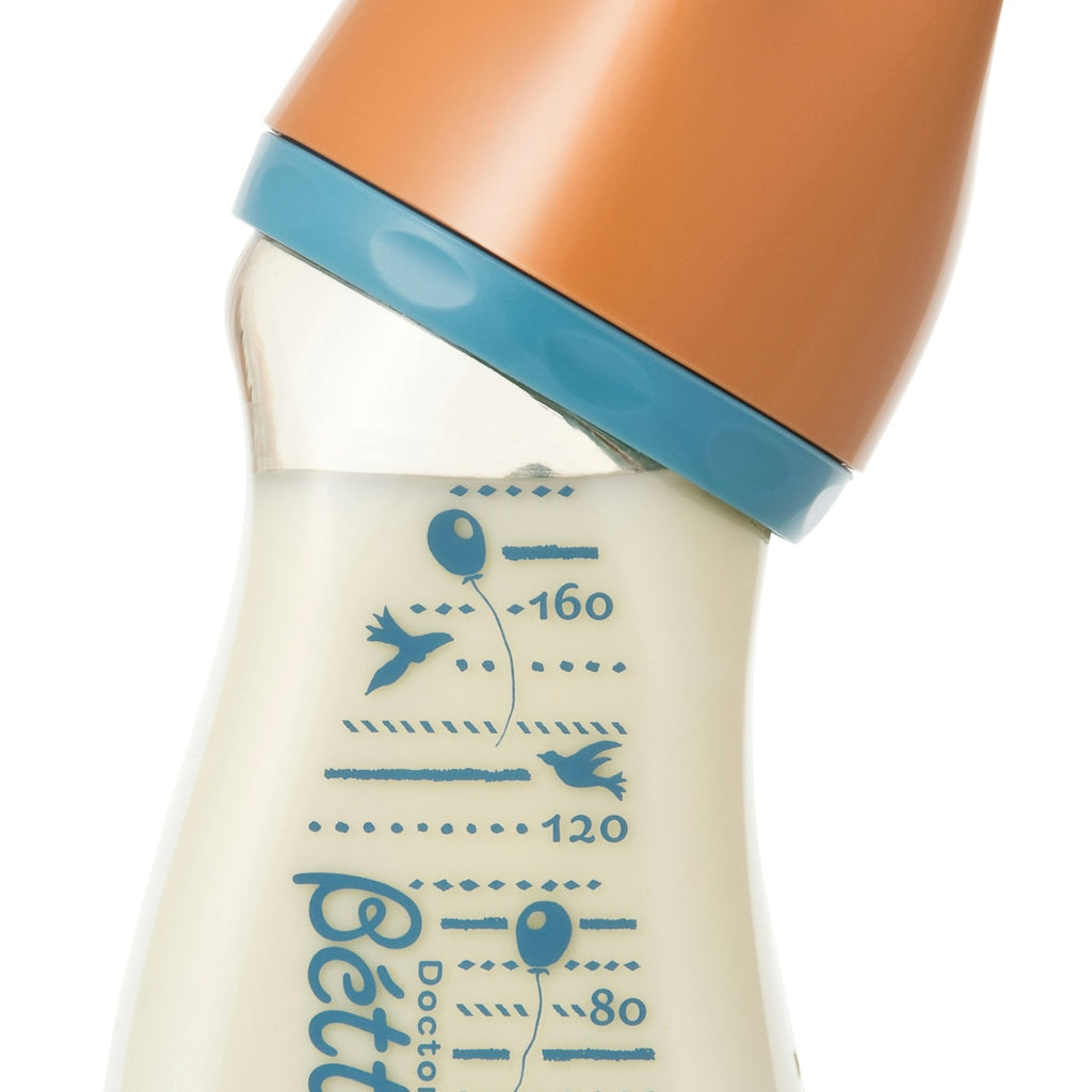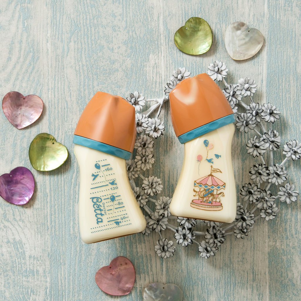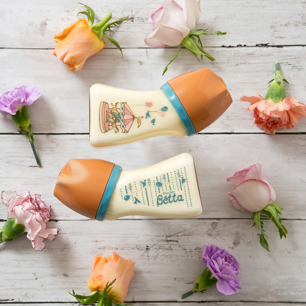 ドクターベッタの広口タイプは、ドクターベッタ哺乳びんの利点「お耳に安心+誤嚥を防ぐ+ゲップの軽減」に加え、洗いやすく、さらに調乳がしやすく、咥えた時の触感がママのおっぱいにより近い哺乳びんです。また、ぽっちゃりしたカタチは安定感があり倒れにくいため、調乳などの際は快適に使用することができます。