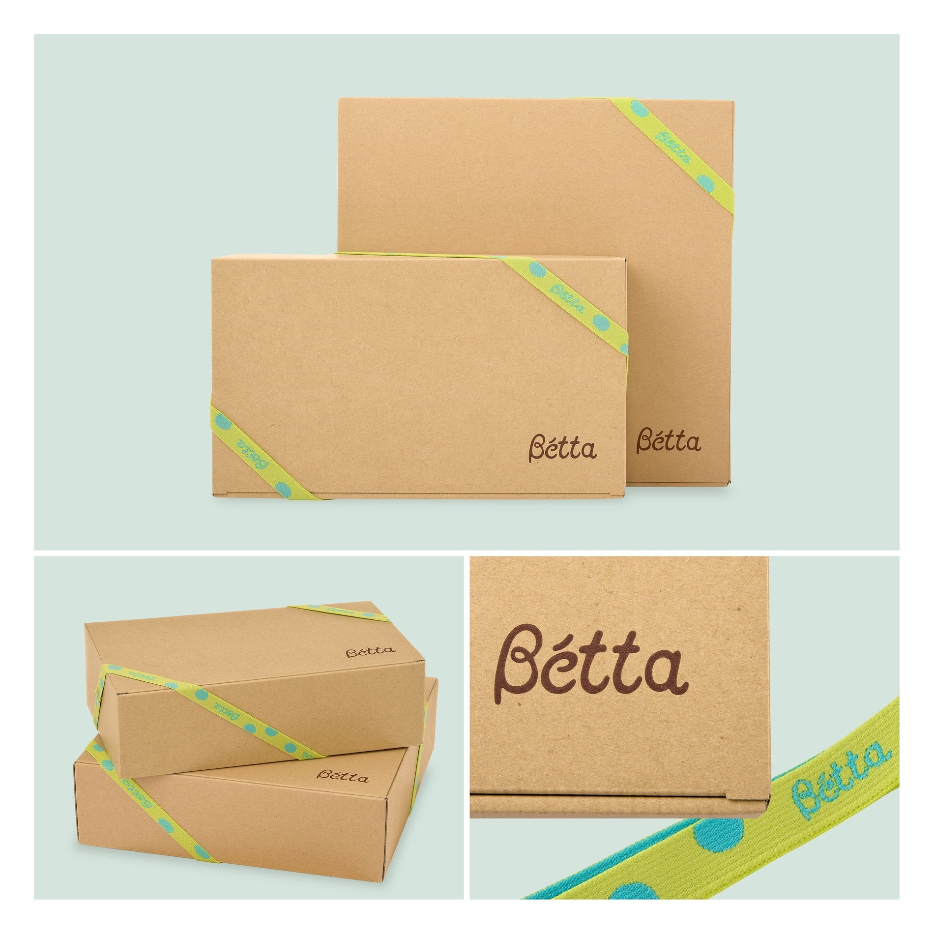 ベッタのロゴが入ったオリジナル ☆ ナチュラルなクラフトBOXでお届けします。ご自宅用はもちろん、大切な方へのギフトにも。スタイリッシュなグリーンのゴムバンド付きです。